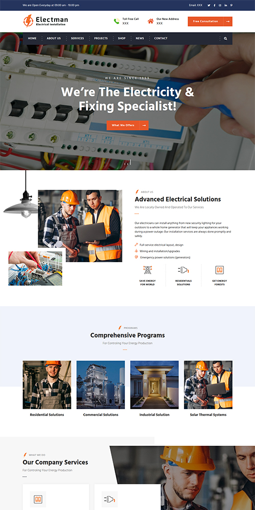 藍(lán)色大氣電力工程維修服務(wù)公司網(wǎng)站模板